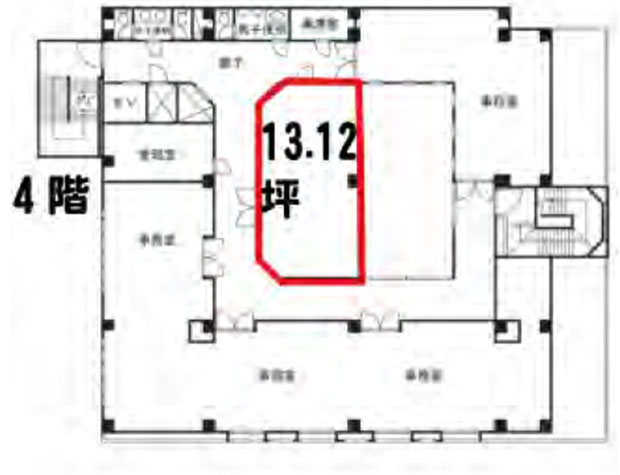 | 4階 | 13.12坪 | 応相談 | 敷金6ヶ月分 | 普通借家:3年 | ||