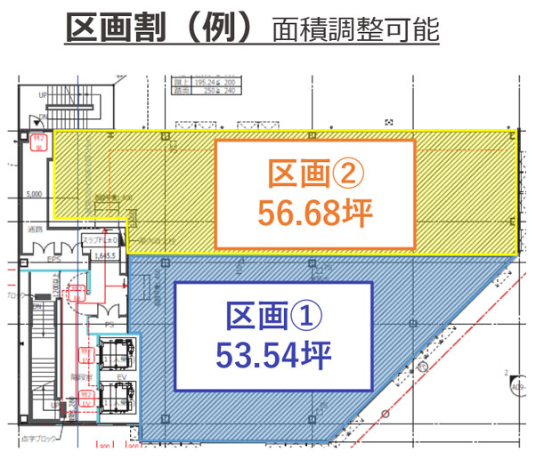| 5F 区画① | 56.68坪 | 14,000円/坪(税込) | 賃料に含む(共益費) | |||
