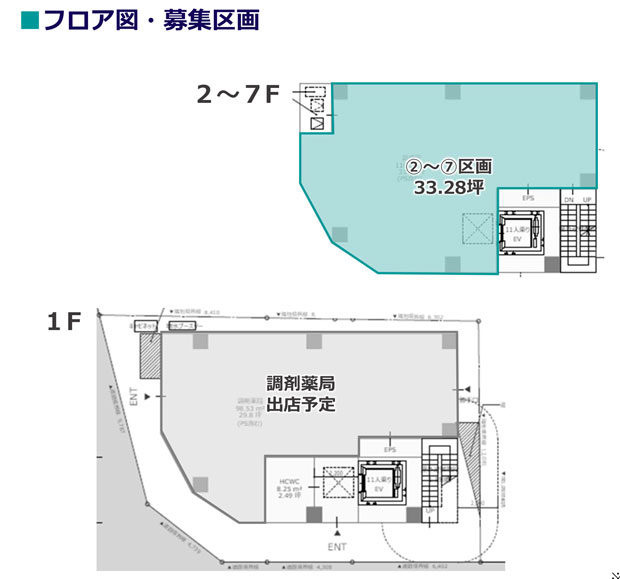 | 2~7階 | 33.28坪 | 22,000円/坪(税込) | 賃料に含む | 保証金:賃料6ヶ月分 | 定期借家20年 |