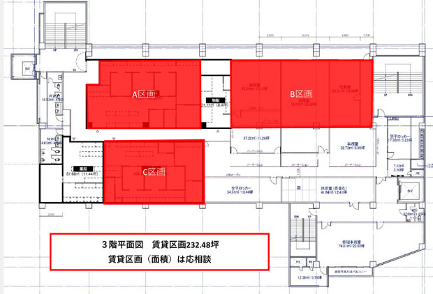| 3階 A,B,C区画 | 合計232.48坪 区画面積応相談 |
