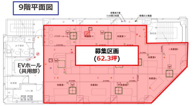 | 9階 | 62.3坪 | 応相談 | 賃料の6ヶ月分(償却3か月) | 賃料の1ヶ月分 |